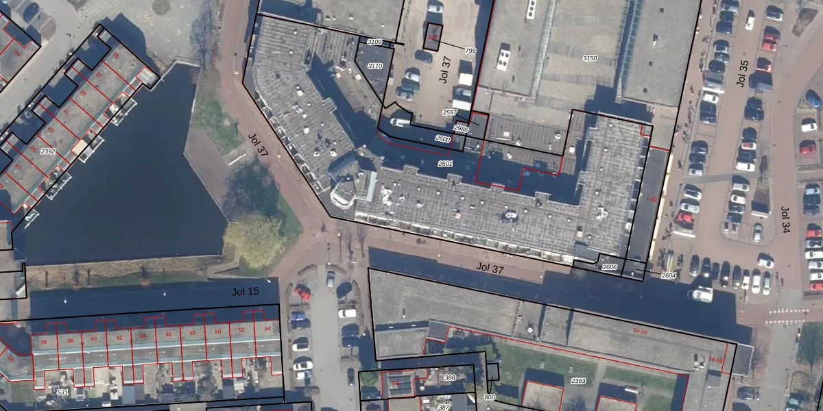 Jol 37 53 is gelegen op kadastraal perceel LLS00N2601. Deze kadastrale aanduiding is uniek en wordt gebruikt door het Kadaster om eigendomsrechten en andere zakelijke rechten vast te leggen. Het perceel maakt onderdeel uit van de kadastrale gemeente Lelystad.