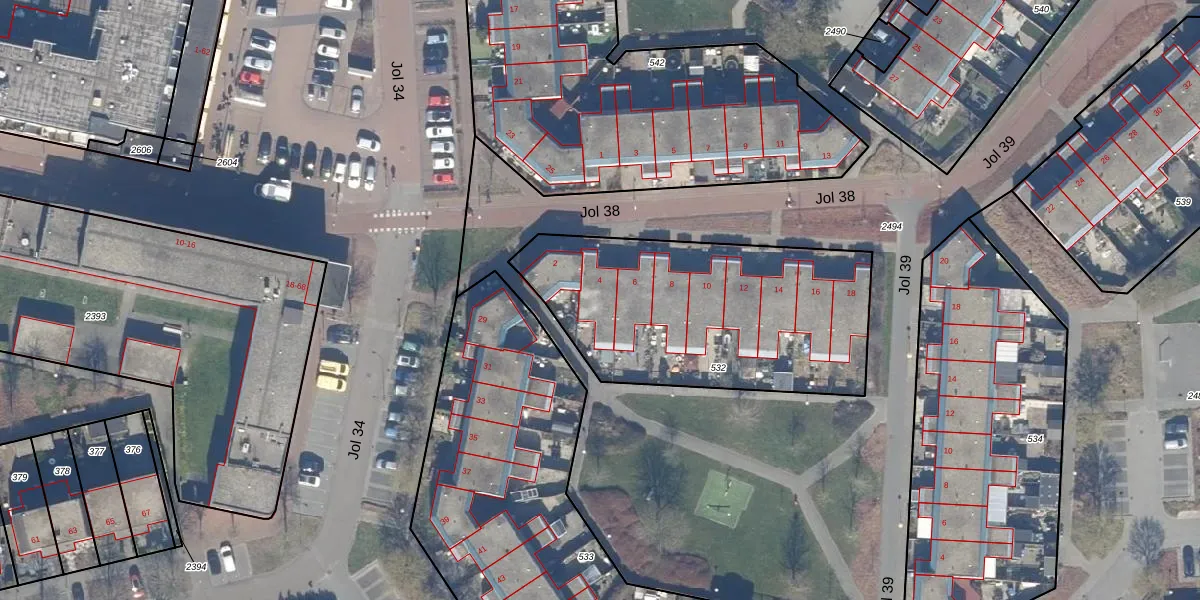 Het perceel waarop Jol 38 4 staat heeft een oppervlakte van 1274 m². Dit is een zeer groot perceel. De perceeloppervlakte wordt geregistreerd door het Kadaster. Gedetailleerde informatie over de maten van dit perceel kunt u vinden in het rapport Kadastrale kaart met maatvoering van Jol 38 4.