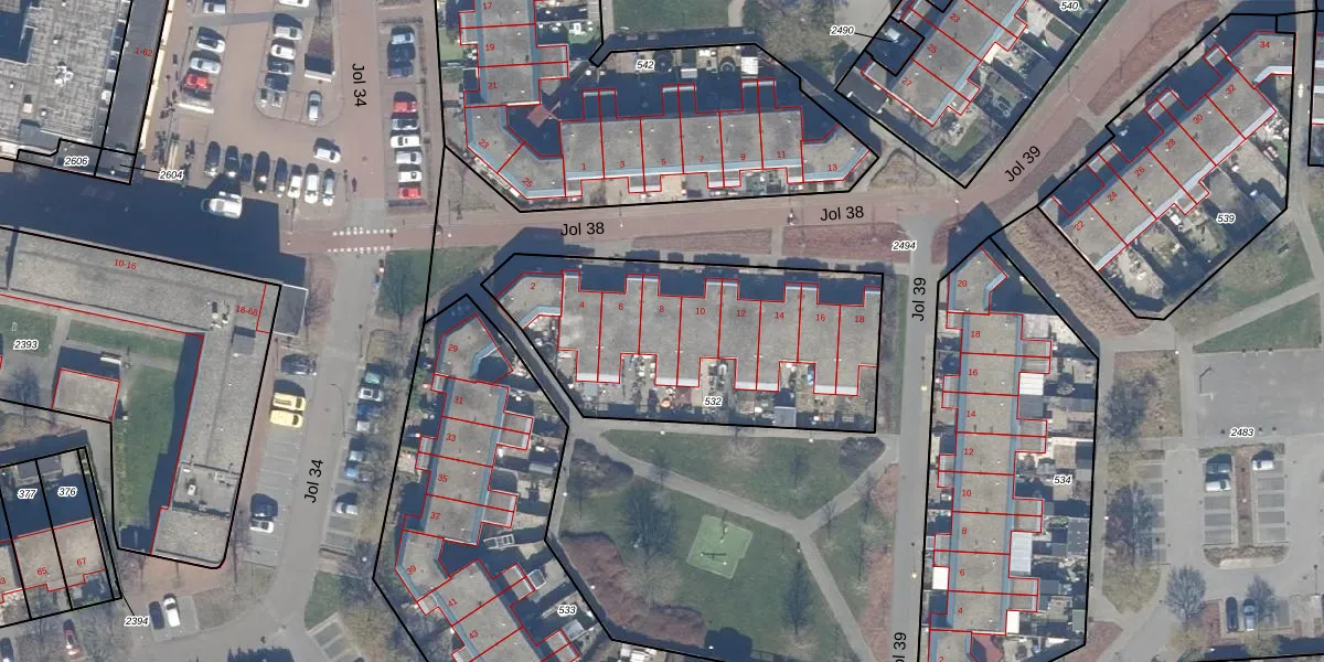 Jol 38 8 is gelegen op kadastraal perceel LLS00N532. Deze kadastrale aanduiding is uniek en wordt gebruikt door het Kadaster om eigendomsrechten en andere zakelijke rechten vast te leggen. Het perceel maakt onderdeel uit van de kadastrale gemeente Lelystad.