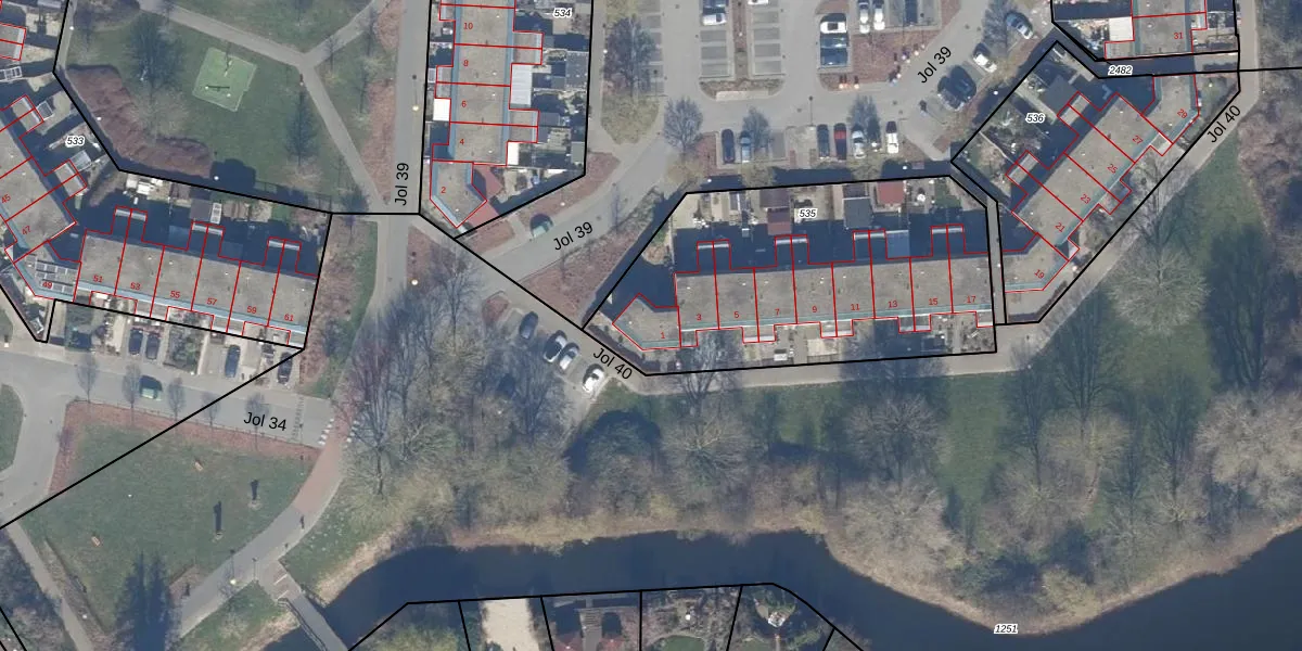 Jol 40 1 is gelegen op kadastraal perceel LLS00N535. Deze kadastrale aanduiding is uniek en wordt gebruikt door het Kadaster om eigendomsrechten en andere zakelijke rechten vast te leggen. Het perceel maakt onderdeel uit van de kadastrale gemeente Lelystad.