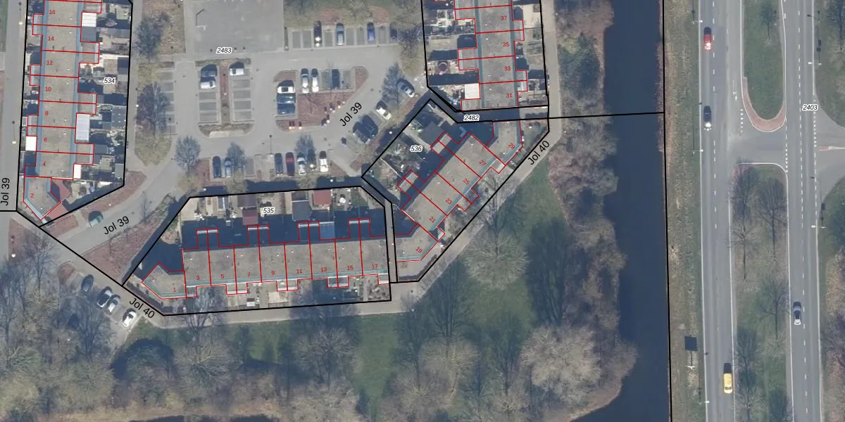 Jol 40 21 is gelegen op kadastraal perceel LLS00N536. Deze kadastrale aanduiding is uniek en wordt gebruikt door het Kadaster om eigendomsrechten en andere zakelijke rechten vast te leggen. Het perceel maakt onderdeel uit van de kadastrale gemeente Lelystad.