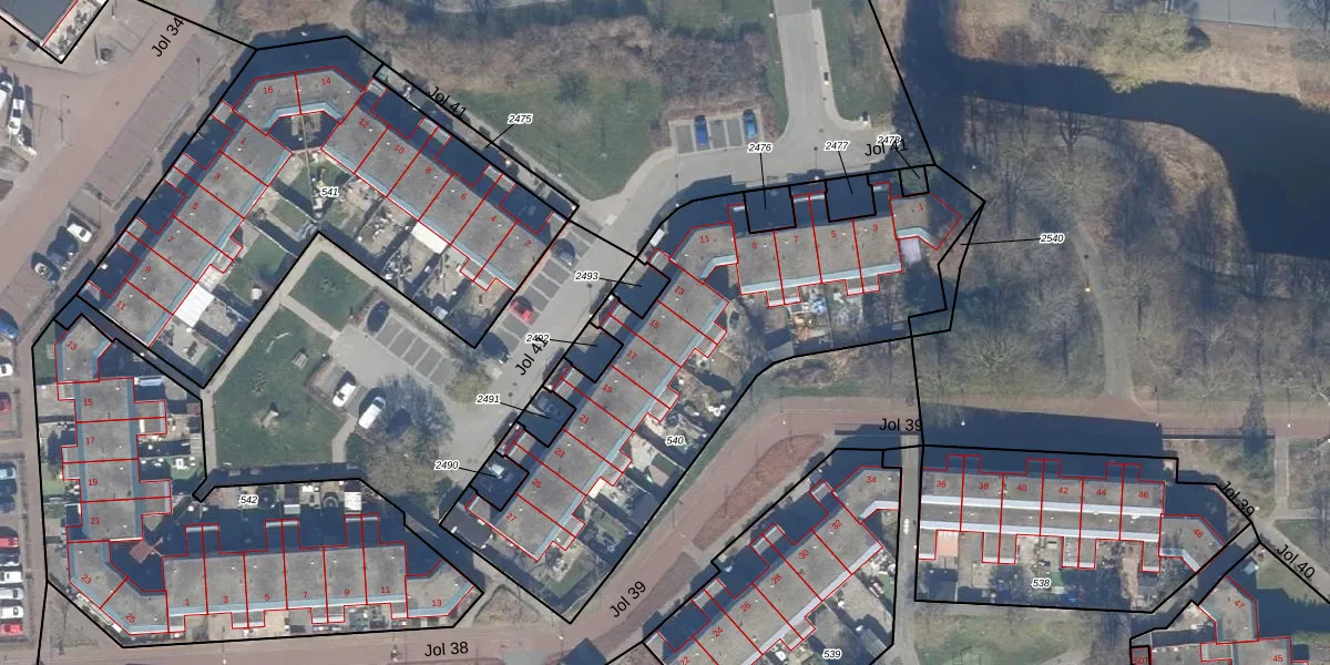 Het perceel waarop Jol 41 15 staat heeft een oppervlakte van 1970 m². Dit is een zeer groot perceel. De perceeloppervlakte wordt geregistreerd door het Kadaster. Gedetailleerde informatie over de maten van dit perceel kunt u vinden in het rapport Kadastrale kaart met maatvoering van Jol 41 15.