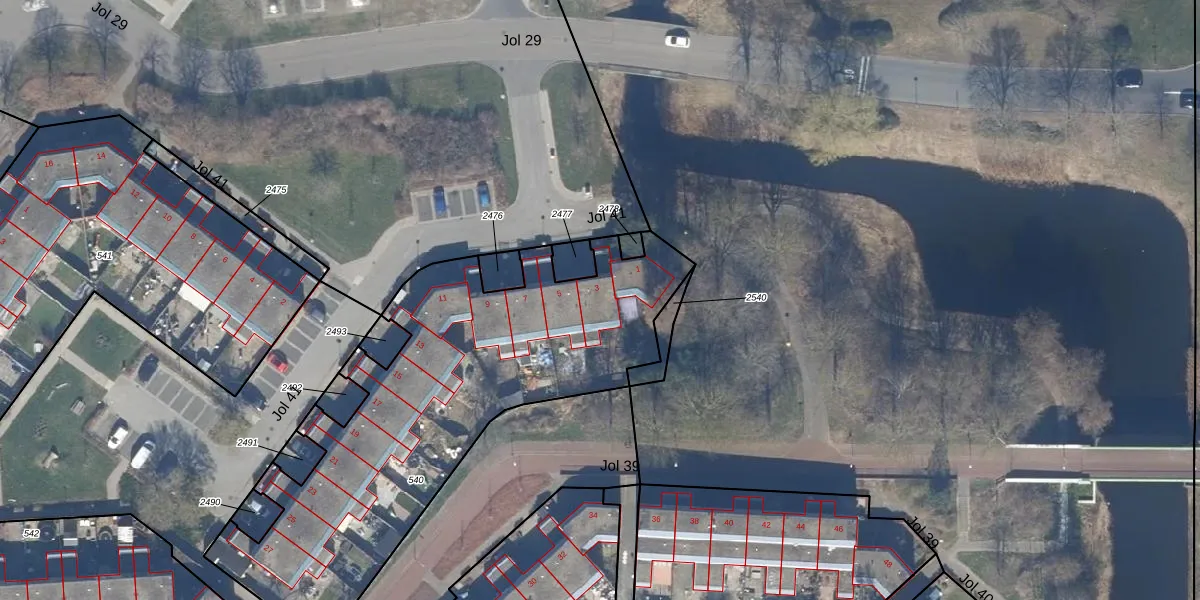 Het perceel waarop Jol 41 3 staat heeft een oppervlakte van 1970 m². Dit is een zeer groot perceel. De perceeloppervlakte wordt geregistreerd door het Kadaster. Gedetailleerde informatie over de maten van dit perceel kunt u vinden in het rapport Kadastrale kaart met maatvoering van Jol 41 3.