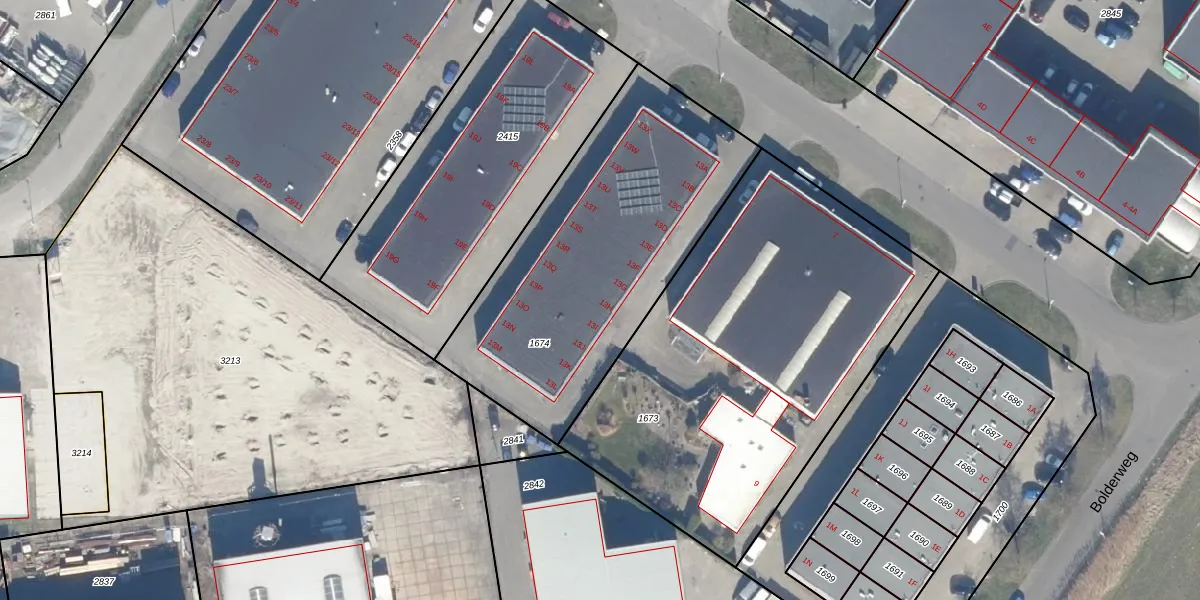 Het adres ligt op het perceel LLS00-N-1674, dat zich in de kadastrale gemeente Lelystad bevindt. Het perceel is kleiner dan gemiddeld in Lelystad. Het perceel is 1500 m² groot, terwijl het gemiddelde ligt op 2,1 ha. De grootste perceeloppervlakte in de kadastrale gemeente is 78,50 km². De kleinste oppervlakte bedraagt 0 m². Er zijn 24 adressen aanwezig op het perceel. De huidige grenzen van het perceel zijn digitaal in de Basisregistratie Kadaster (BRK) geregistreerd op 15-02-2011.