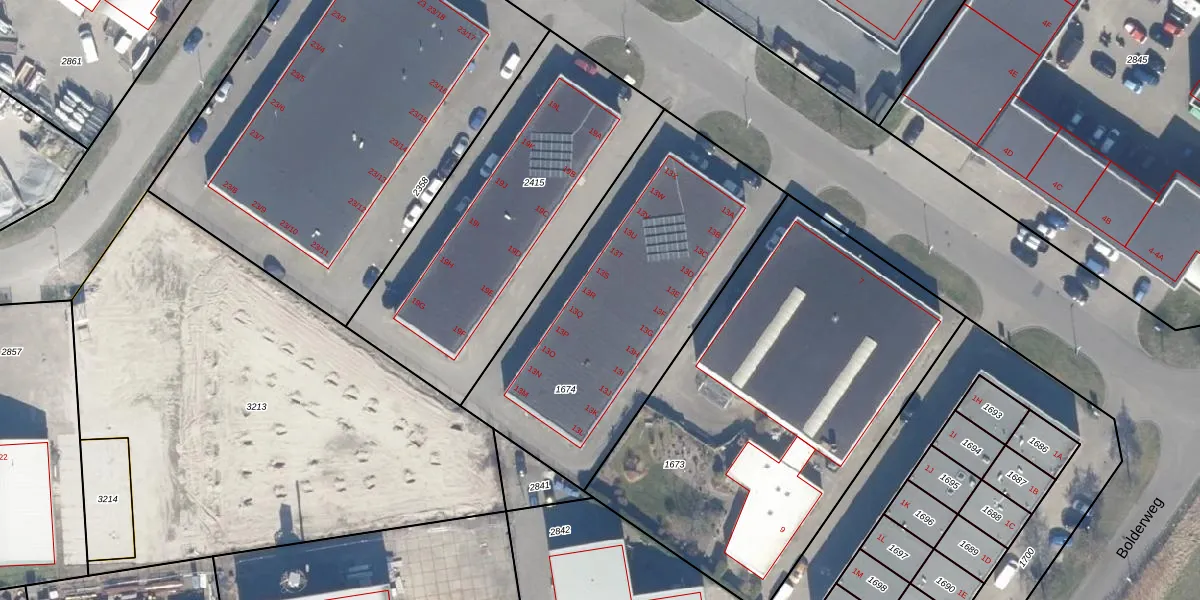 Het adres ligt op het perceel LLS00-N-1674, dat zich in de kadastrale gemeente Lelystad bevindt. Het perceel is kleiner dan gemiddeld in Lelystad. Het perceel is 1500 m² groot, terwijl het gemiddelde ligt op 2,1 ha. De grootste perceeloppervlakte in de kadastrale gemeente is 78,50 km². De kleinste oppervlakte bedraagt 0 m². Op het perceel liggen in totaal 24 adressen. In de Basisregistratie Kadaster (BRK) werden de grenzen van het perceel geregistreerd op 15-02-2011.