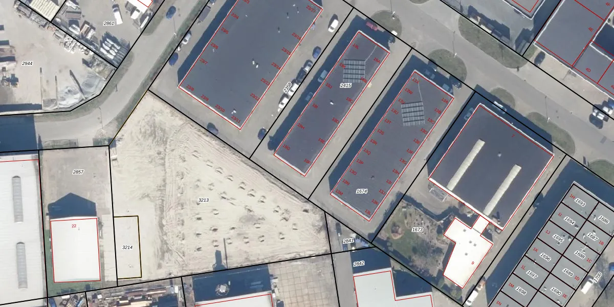 Het adres is gelegen op perceel 2415 in de sectie N en de kadastrale gemeente Lelystad. De kadastrale aanduiding is aldus LLS00-N-2415. Het perceel is 1395 m² groot. Dat is kleiner dan de gemiddelde perceeloppervlakte in Lelystad, dat op 2,1 ha ligt. De grootste perceeloppervlakte in de kadastrale gemeente is 78,50 km². De kleinste oppervlakte bedraagt 0 m². Er zijn 12 adressen aanwezig op het perceel. In de Basisregistratie Kadaster (BRK) werden de grenzen van het perceel geregistreerd op 15-02-2011.