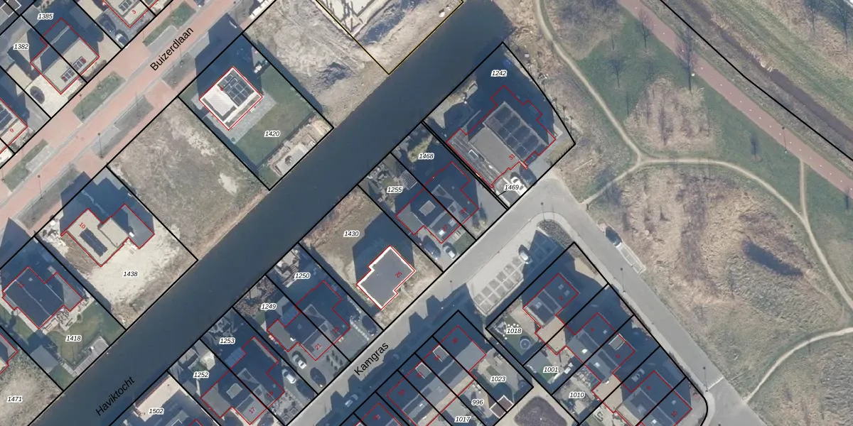 Gebruik de zoekbalk of klik op een perceel voor informatie over de adressen binnen dit perceel.