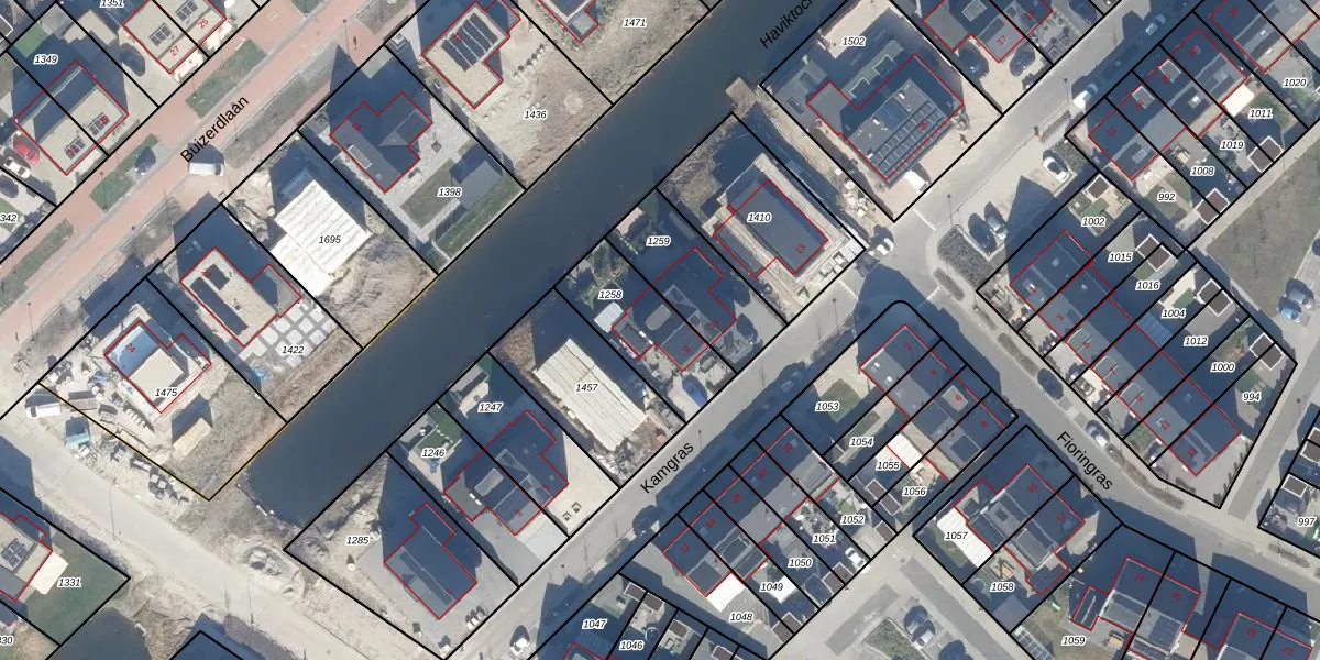 Het perceel waarop Kamgras 9 staat heeft een oppervlakte van 312 m². Dit is een groot perceel. De perceeloppervlakte wordt geregistreerd door het Kadaster. Gedetailleerde informatie over de maten van dit perceel kunt u vinden in het rapport Kadastrale kaart met maatvoering van Kamgras 9.