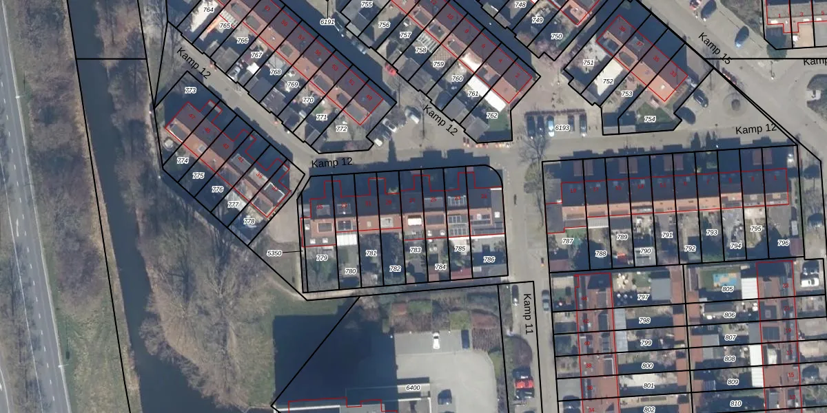 Het perceel waarop Kamp 12 27 staat heeft een oppervlakte van 148 m². Dit is een middelgroot perceel. De perceeloppervlakte wordt geregistreerd door het Kadaster. Gedetailleerde informatie over de maten van dit perceel kunt u vinden in het rapport Kadastrale kaart met maatvoering van Kamp 12 27.