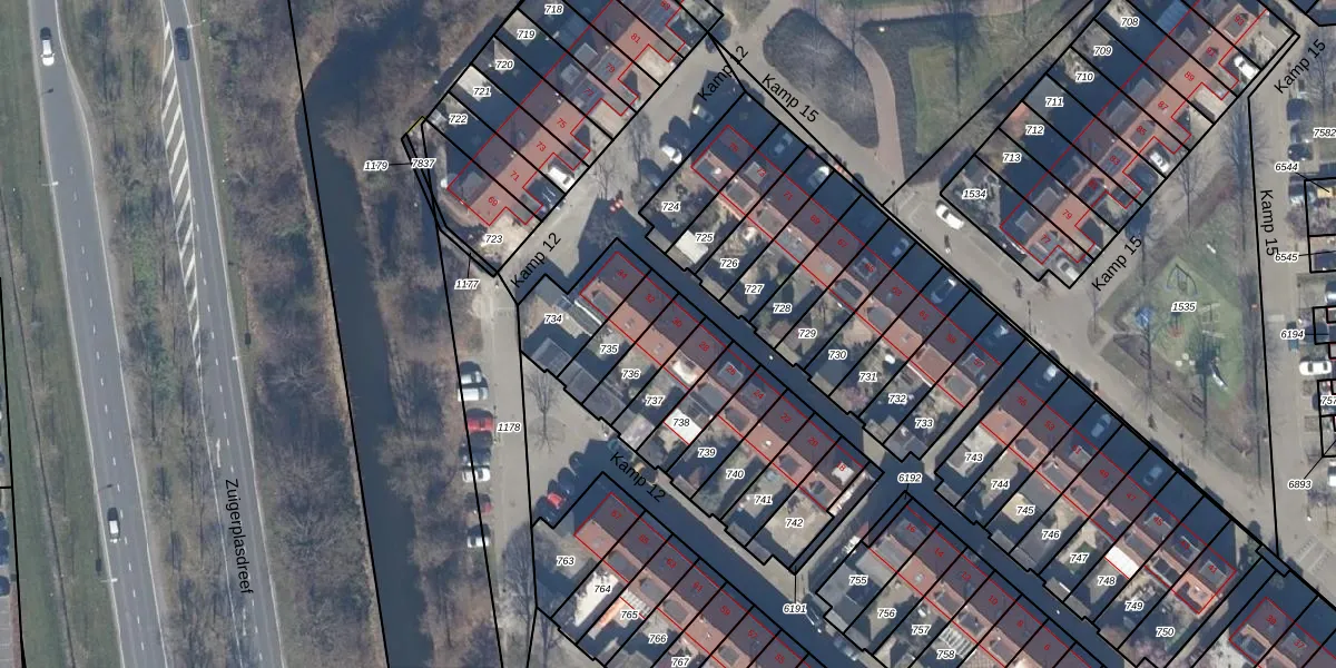 Gebruik de zoekbalk of klik op een perceel voor informatie over de adressen binnen dit perceel.