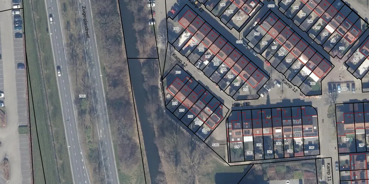 Kamp 12 45 is gelegen op kadastraal perceel LLS00O774. Deze kadastrale aanduiding is uniek en wordt gebruikt door het Kadaster om eigendomsrechten en andere zakelijke rechten vast te leggen. Het perceel maakt onderdeel uit van de kadastrale gemeente Lelystad.