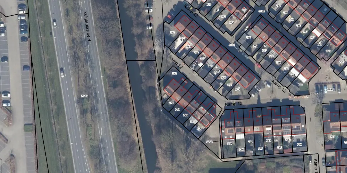 Gebruik de zoekbalk of klik op een perceel voor informatie over de adressen binnen dit perceel.