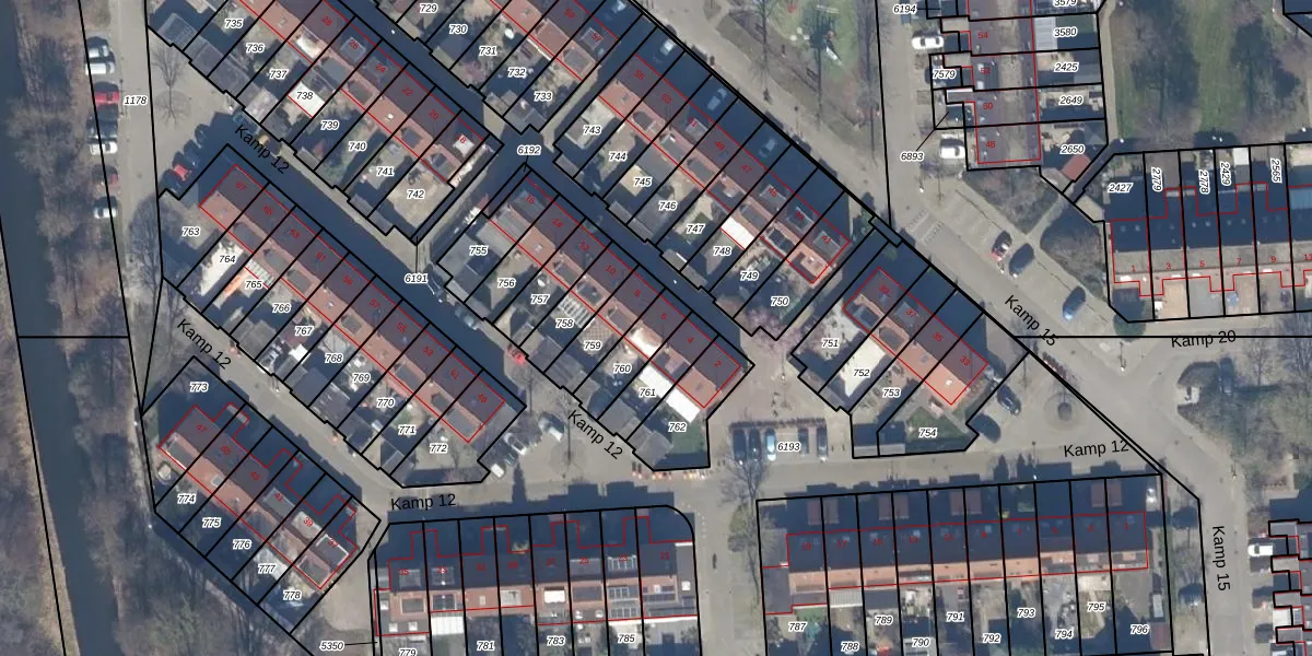 Het perceel waarop Kamp 12 6 staat heeft een oppervlakte van 119 m². Dit is een middelgroot perceel. De perceeloppervlakte wordt geregistreerd door het Kadaster. Gedetailleerde informatie over de maten van dit perceel kunt u vinden in het rapport Kadastrale kaart met maatvoering van Kamp 12 6.