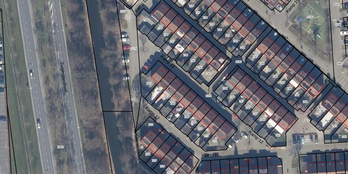 Het perceel waarop Kamp 12 63 staat heeft een oppervlakte van 119 m². Dit is een middelgroot perceel. De perceeloppervlakte wordt geregistreerd door het Kadaster. Gedetailleerde informatie over de maten van dit perceel kunt u vinden in het rapport Kadastrale kaart met maatvoering van Kamp 12 63.
