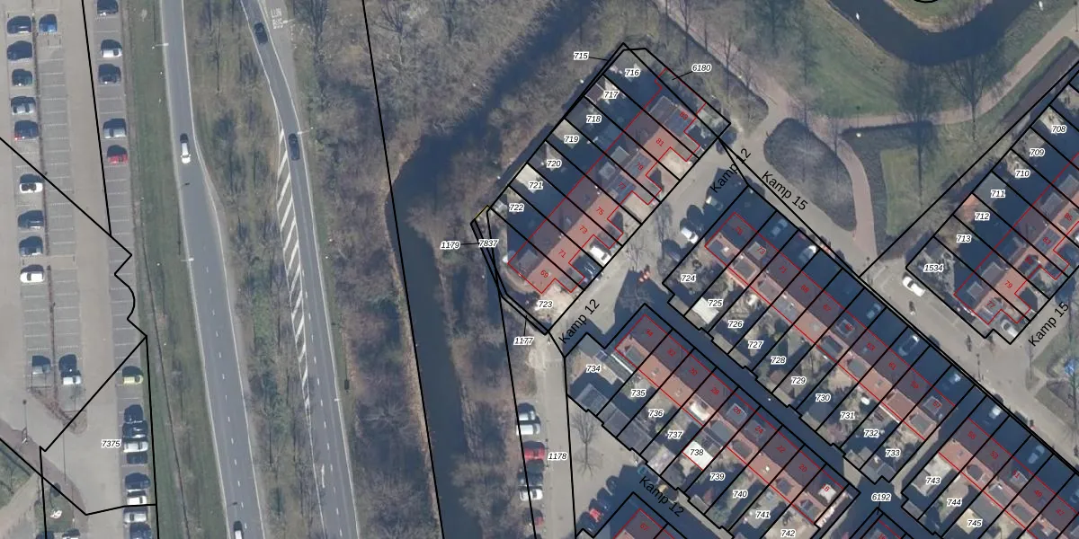 Het perceel waarop Kamp 12 69 staat heeft een oppervlakte van 182 m². Dit is een middelgroot perceel. De perceeloppervlakte wordt geregistreerd door het Kadaster. Gedetailleerde informatie over de maten van dit perceel kunt u vinden in het rapport Kadastrale kaart met maatvoering van Kamp 12 69.