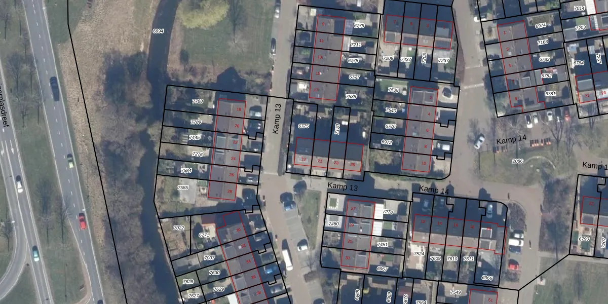 Kamp 13 19 is gelegen op kadastraal perceel LLS00O6775. Deze kadastrale aanduiding is uniek en wordt gebruikt door het Kadaster om eigendomsrechten en andere zakelijke rechten vast te leggen. Het perceel maakt onderdeel uit van de kadastrale gemeente Lelystad.