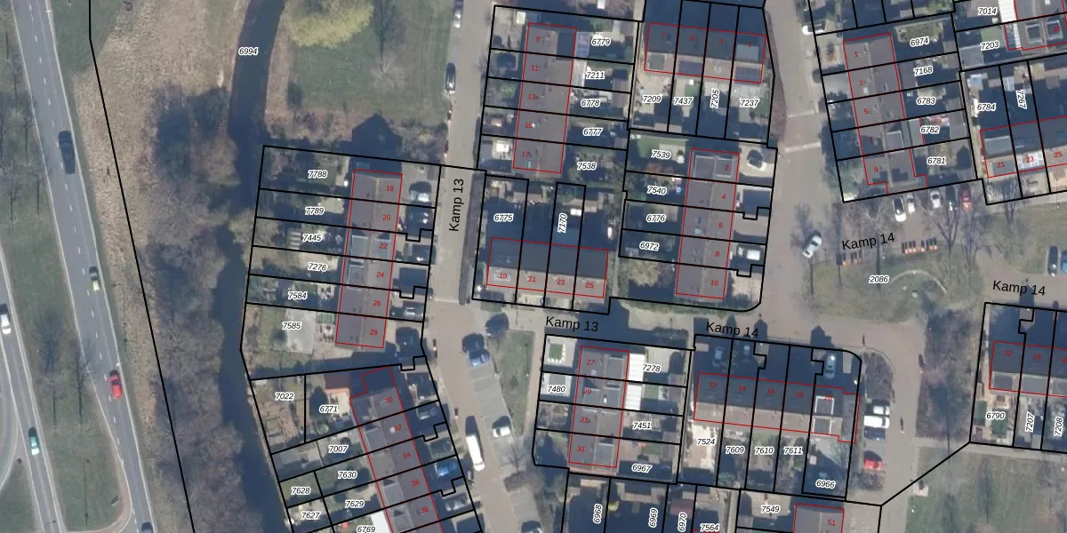 Kamp 13 21 is gelegen op kadastraal perceel LLS00O7538. Deze kadastrale aanduiding is uniek en wordt gebruikt door het Kadaster om eigendomsrechten en andere zakelijke rechten vast te leggen. Het perceel maakt onderdeel uit van de kadastrale gemeente Lelystad.