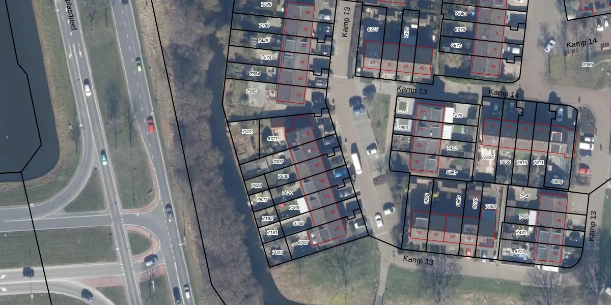 Kamp 13 32 is gelegen op kadastraal perceel LLS00O7007. Deze kadastrale aanduiding is uniek en wordt gebruikt door het Kadaster om eigendomsrechten en andere zakelijke rechten vast te leggen. Het perceel maakt onderdeel uit van de kadastrale gemeente Lelystad.
