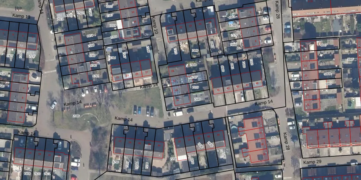 Kamp 14 33 is gelegen op kadastraal perceel LLS00O7019. Deze kadastrale aanduiding is uniek en wordt gebruikt door het Kadaster om eigendomsrechten en andere zakelijke rechten vast te leggen. Het perceel maakt onderdeel uit van de kadastrale gemeente Lelystad.