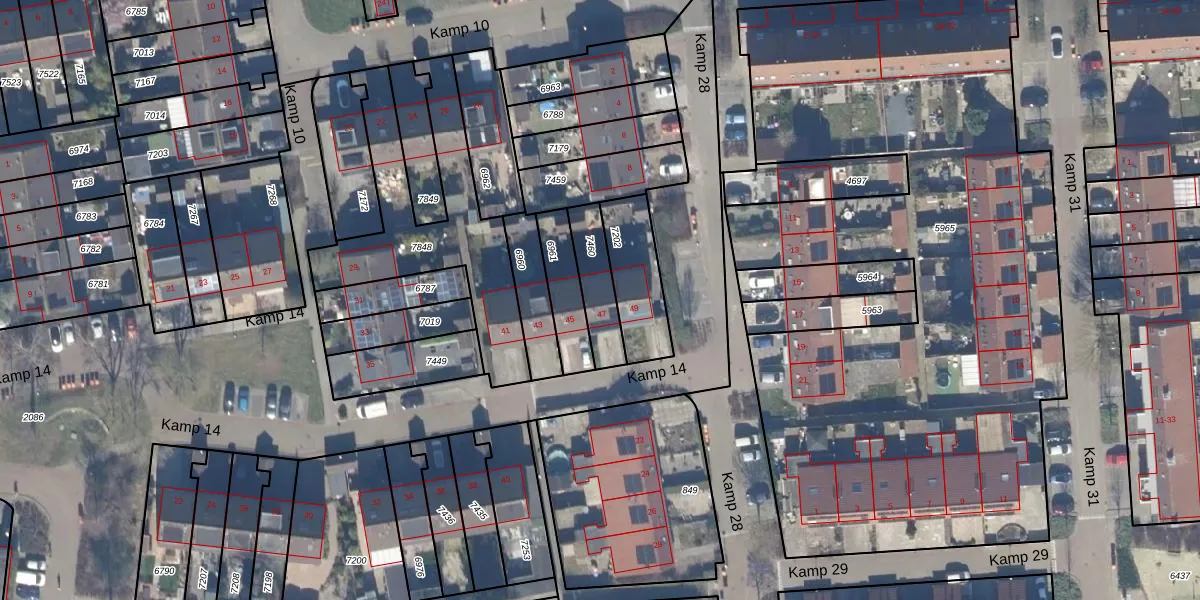 Het perceel waarop Kamp 14 47 staat heeft een oppervlakte van 148 m². Dit is een middelgroot perceel. De perceeloppervlakte wordt geregistreerd door het Kadaster. Gedetailleerde informatie over de maten van dit perceel kunt u vinden in het rapport Kadastrale kaart met maatvoering van Kamp 14 47.