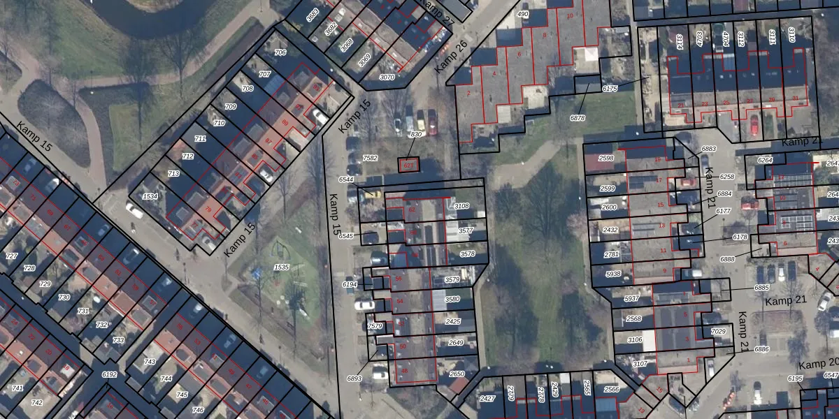 Gebruik de zoekbalk of klik op een perceel voor informatie over de adressen binnen dit perceel.