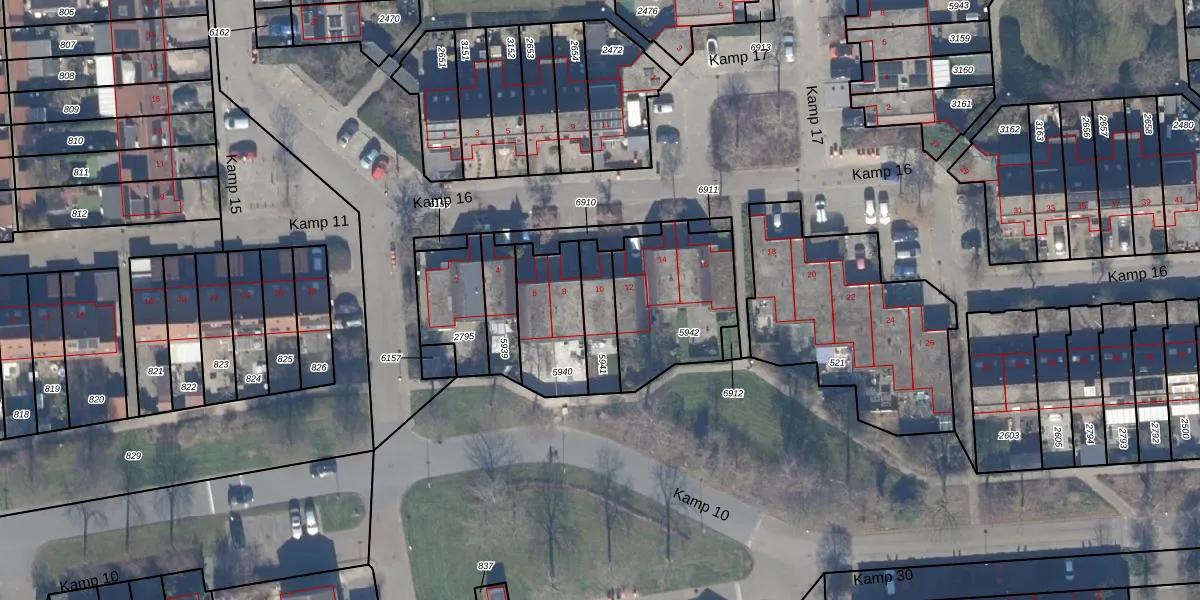 Gebruik de zoekbalk of klik op een perceel voor informatie over de adressen binnen dit perceel.
