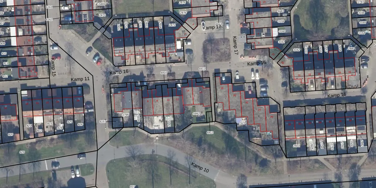 Het perceel waarop Kamp 16 14 staat heeft een oppervlakte van 451 m². Dit is een groot perceel. De perceeloppervlakte wordt geregistreerd door het Kadaster. Gedetailleerde informatie over de maten van dit perceel kunt u vinden in het rapport Kadastrale kaart met maatvoering van Kamp 16 14.