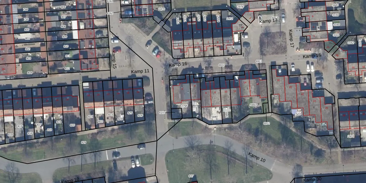 Gebruik de zoekbalk of klik op een perceel voor informatie over de adressen binnen dit perceel.