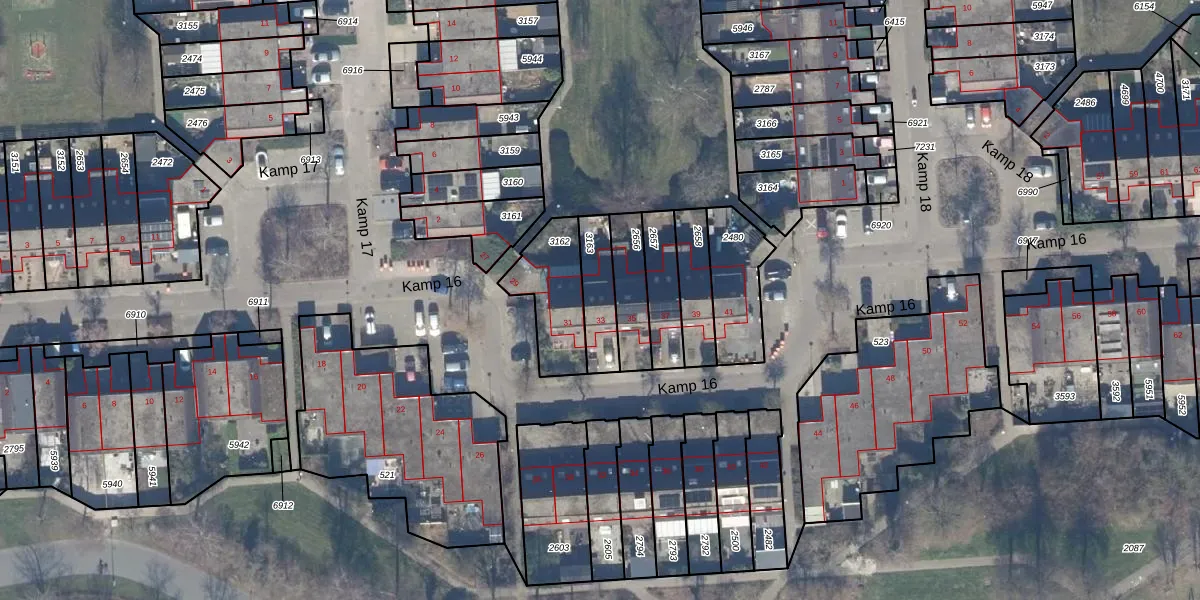 Kamp 16 33 is gelegen op kadastraal perceel LLS00O3163. Deze kadastrale aanduiding is uniek en wordt gebruikt door het Kadaster om eigendomsrechten en andere zakelijke rechten vast te leggen. Het perceel maakt onderdeel uit van de kadastrale gemeente Lelystad.