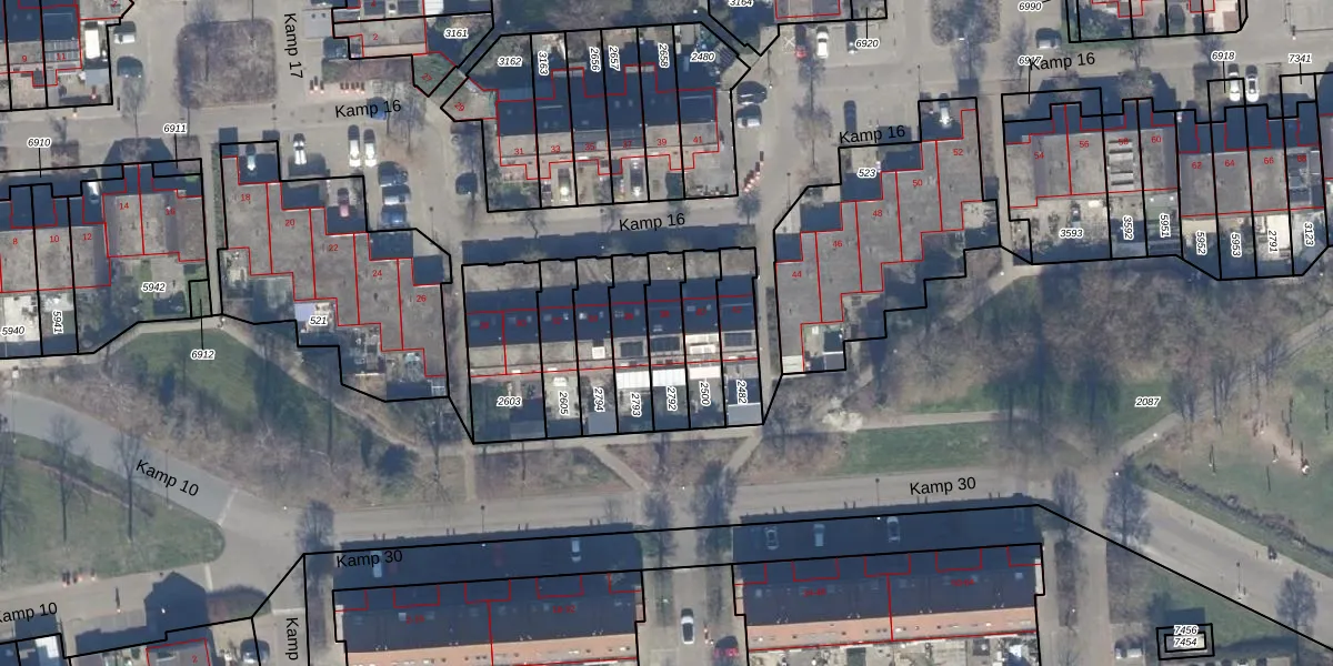 Het perceel waarop Kamp 16 38 staat heeft een oppervlakte van 144 m². Dit is een middelgroot perceel. De perceeloppervlakte wordt geregistreerd door het Kadaster. Gedetailleerde informatie over de maten van dit perceel kunt u vinden in het rapport Kadastrale kaart met maatvoering van Kamp 16 38.