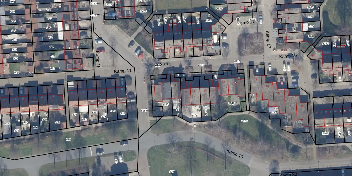 Kamp 16 4 is gelegen op kadastraal perceel LLS00O5939. Deze kadastrale aanduiding is uniek en wordt gebruikt door het Kadaster om eigendomsrechten en andere zakelijke rechten vast te leggen. Het perceel maakt onderdeel uit van de kadastrale gemeente Lelystad.