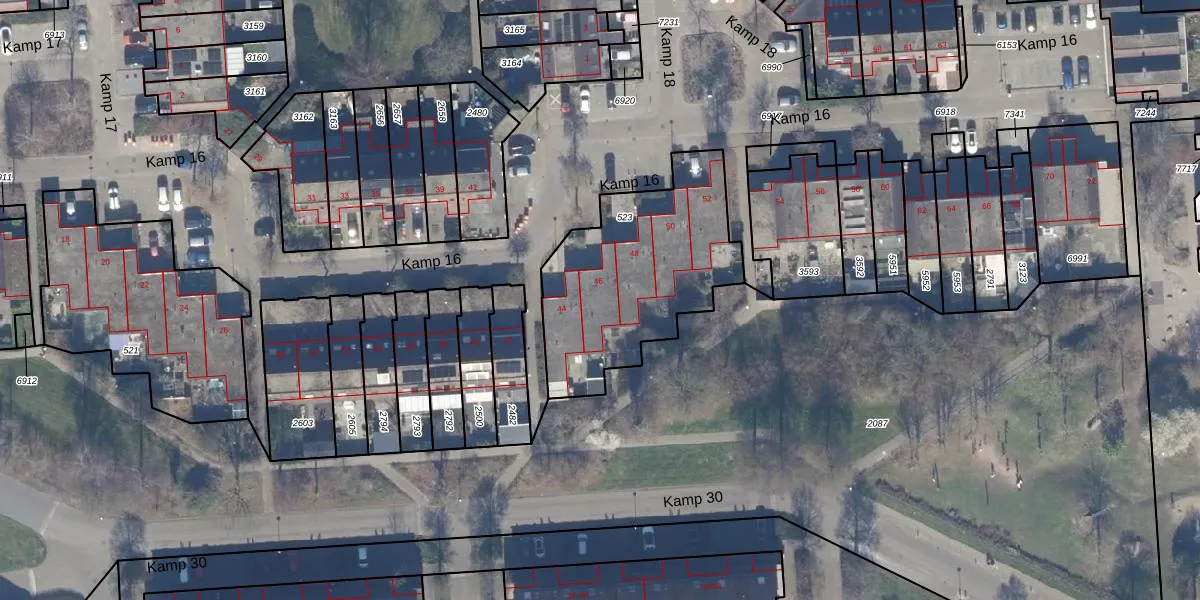 Het perceel waarop Kamp 16 46 staat heeft een oppervlakte van 836 m². Dit is een groot perceel. De perceeloppervlakte wordt geregistreerd door het Kadaster. Gedetailleerde informatie over de maten van dit perceel kunt u vinden in het rapport Kadastrale kaart met maatvoering van Kamp 16 46.