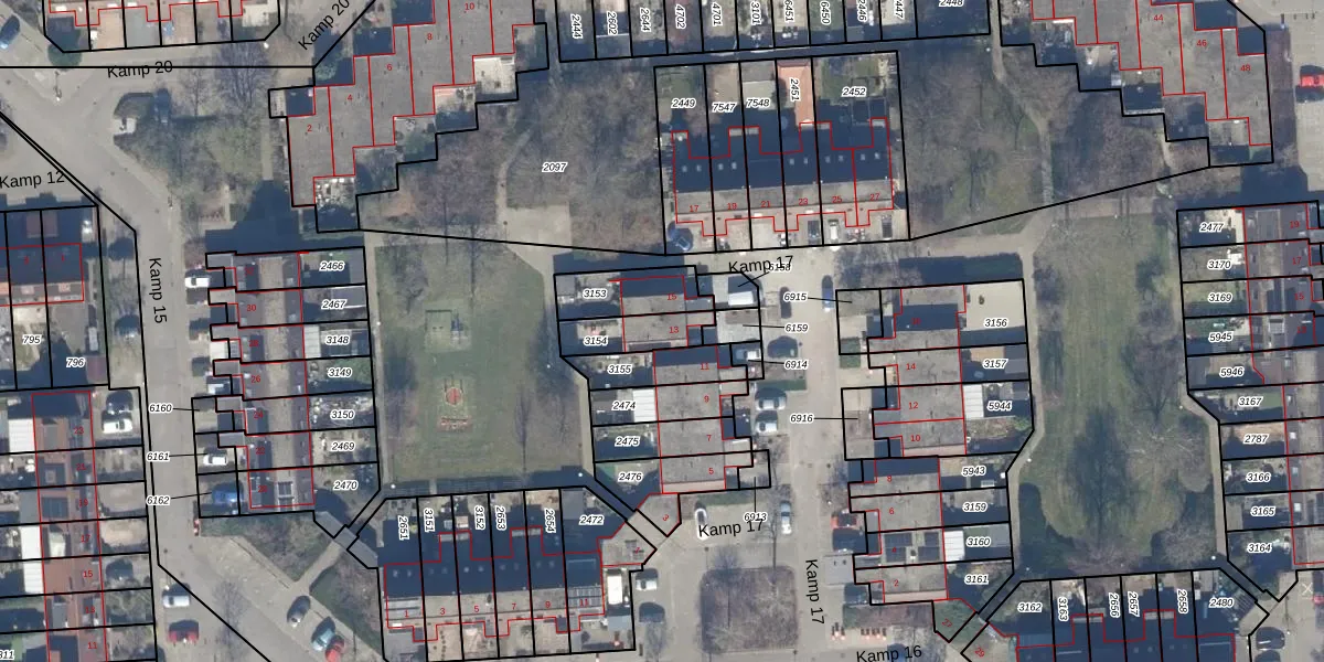 Gebruik de zoekbalk of klik op een perceel voor informatie over de adressen binnen dit perceel.