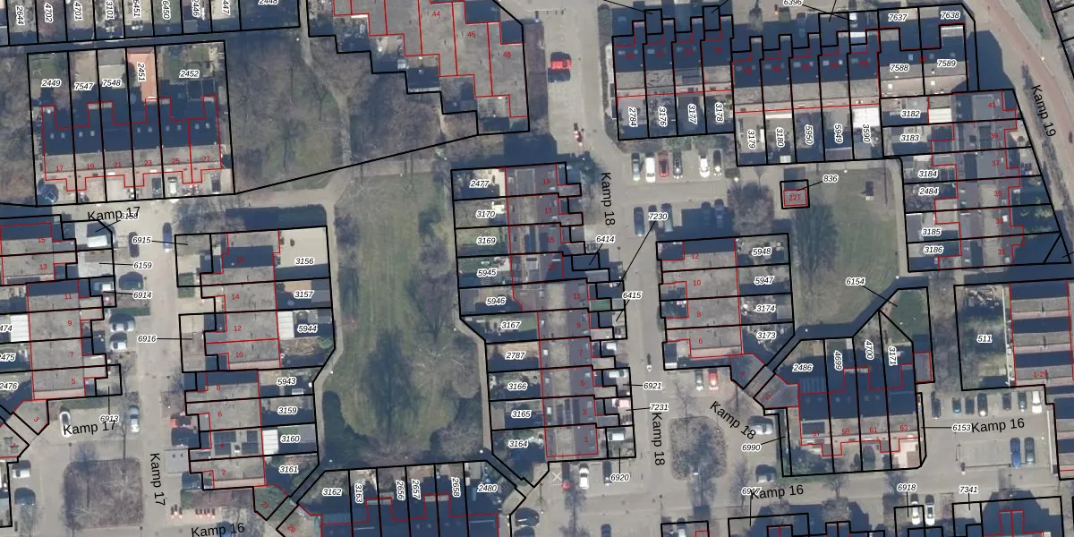 Gebruik de zoekbalk of klik op een perceel voor informatie over de adressen binnen dit perceel.