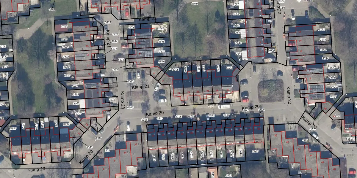 Het perceel waarop Kamp 20 21 staat heeft een oppervlakte van 214 m². Dit is een middelgroot perceel. De perceeloppervlakte wordt geregistreerd door het Kadaster. Gedetailleerde informatie over de maten van dit perceel kunt u vinden in het rapport Kadastrale kaart met maatvoering van Kamp 20 21.