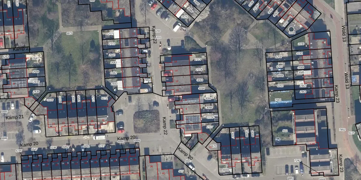 Kamp 22 10 is gelegen op kadastraal perceel LLS00O3094. Deze kadastrale aanduiding is uniek en wordt gebruikt door het Kadaster om eigendomsrechten en andere zakelijke rechten vast te leggen. Het perceel maakt onderdeel uit van de kadastrale gemeente Lelystad.