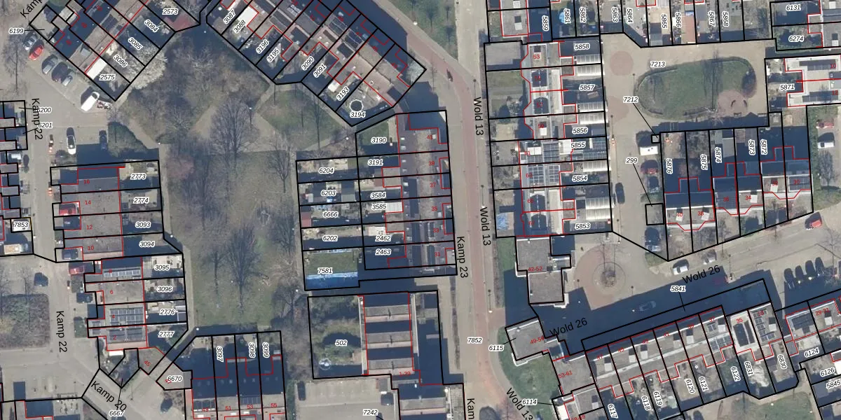 Gebruik de zoekbalk of klik op een perceel voor informatie over de adressen binnen dit perceel.
