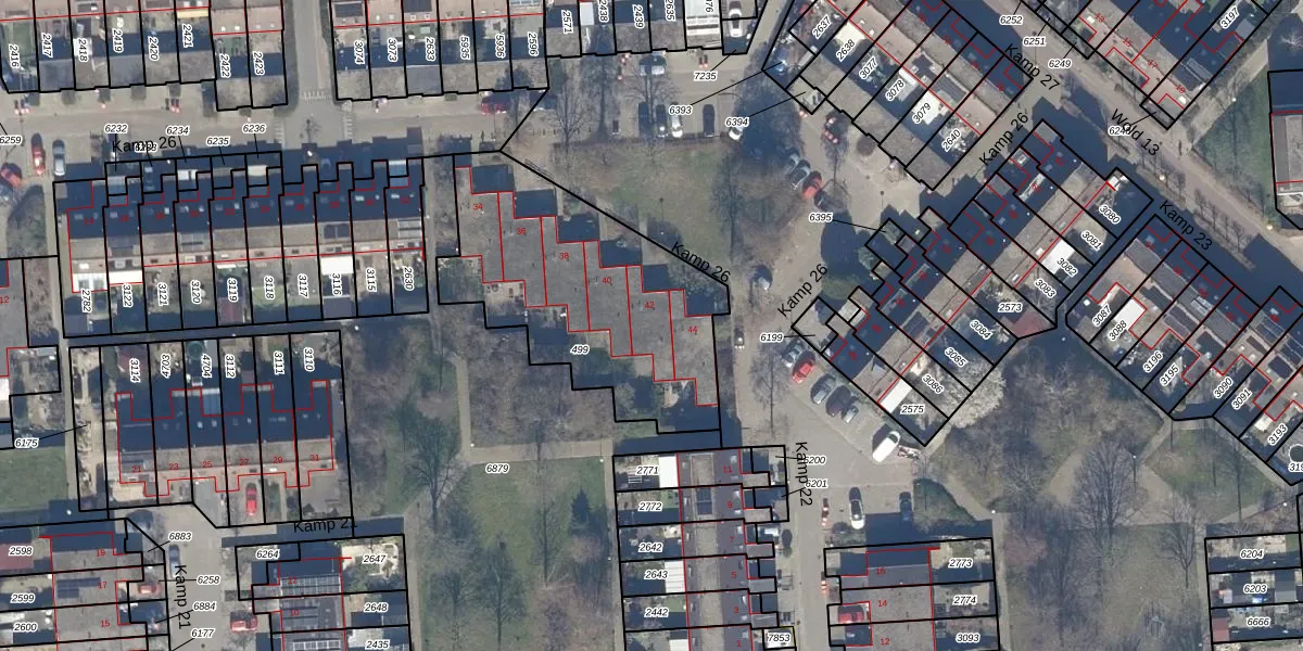 Kamp 26 42 is gelegen op kadastraal perceel LLS00O499. Deze kadastrale aanduiding is uniek en wordt gebruikt door het Kadaster om eigendomsrechten en andere zakelijke rechten vast te leggen. Het perceel maakt onderdeel uit van de kadastrale gemeente Lelystad.