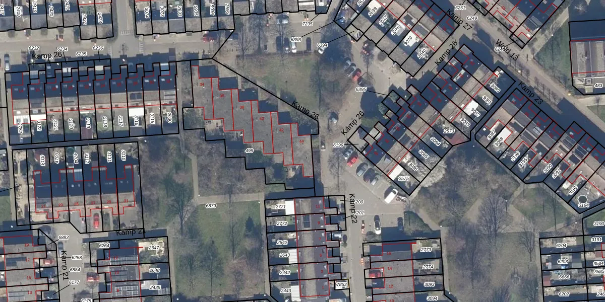 Kamp 26 44 is gelegen op kadastraal perceel LLS00O499. Deze kadastrale aanduiding is uniek en wordt gebruikt door het Kadaster om eigendomsrechten en andere zakelijke rechten vast te leggen. Het perceel maakt onderdeel uit van de kadastrale gemeente Lelystad.
