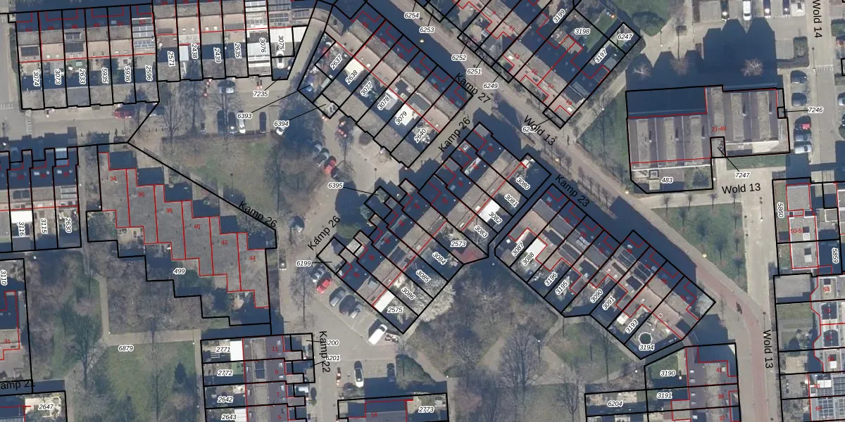Gebruik de zoekbalk of klik op een perceel voor informatie over de adressen binnen dit perceel.