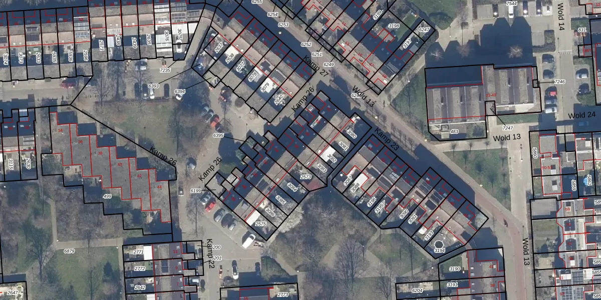 Gebruik de zoekbalk of klik op een perceel voor informatie over de adressen binnen dit perceel.