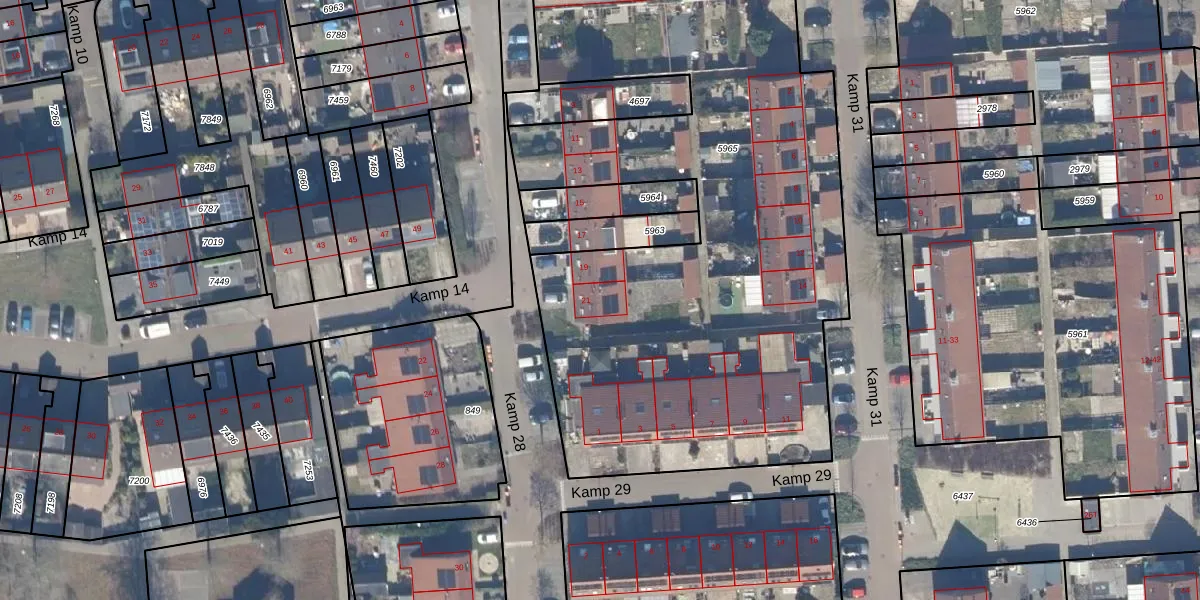 Het perceel waarop Kamp 28 21 staat heeft een oppervlakte van 3953 m². Dit is een zeer groot perceel. De perceeloppervlakte wordt geregistreerd door het Kadaster. Gedetailleerde informatie over de maten van dit perceel kunt u vinden in het rapport Kadastrale kaart met maatvoering van Kamp 28 21.