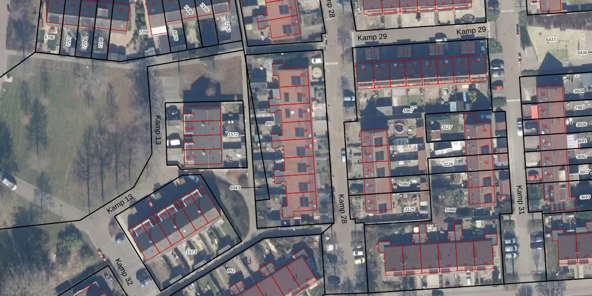 Kamp 28 38 is gelegen op kadastraal perceel LLS00O850. Deze kadastrale aanduiding is uniek en wordt gebruikt door het Kadaster om eigendomsrechten en andere zakelijke rechten vast te leggen. Het perceel maakt onderdeel uit van de kadastrale gemeente Lelystad.