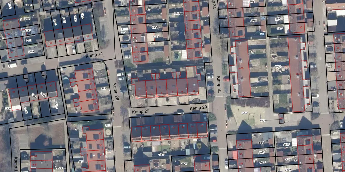 Het perceel waarop Kamp 29 7 staat heeft een oppervlakte van 3953 m². Dit is een zeer groot perceel. De perceeloppervlakte wordt geregistreerd door het Kadaster. Gedetailleerde informatie over de maten van dit perceel kunt u vinden in het rapport Kadastrale kaart met maatvoering van Kamp 29 7.