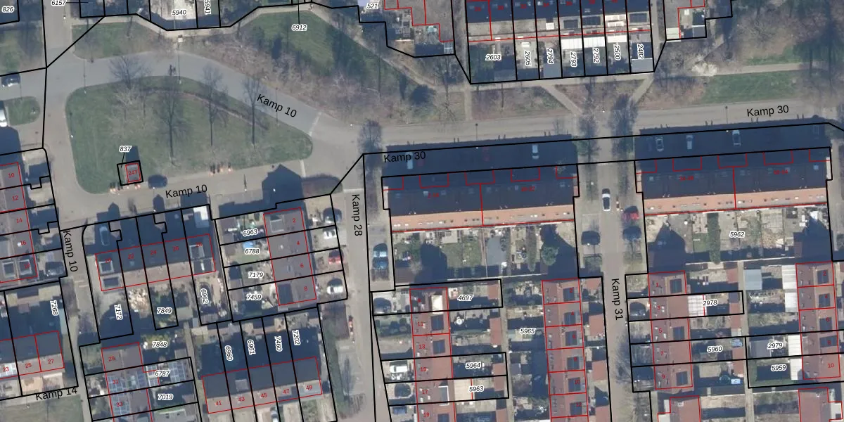Kamp 30 12 is gelegen op kadastraal perceel LLS00O5965. Deze kadastrale aanduiding is uniek en wordt gebruikt door het Kadaster om eigendomsrechten en andere zakelijke rechten vast te leggen. Het perceel maakt onderdeel uit van de kadastrale gemeente Lelystad.
