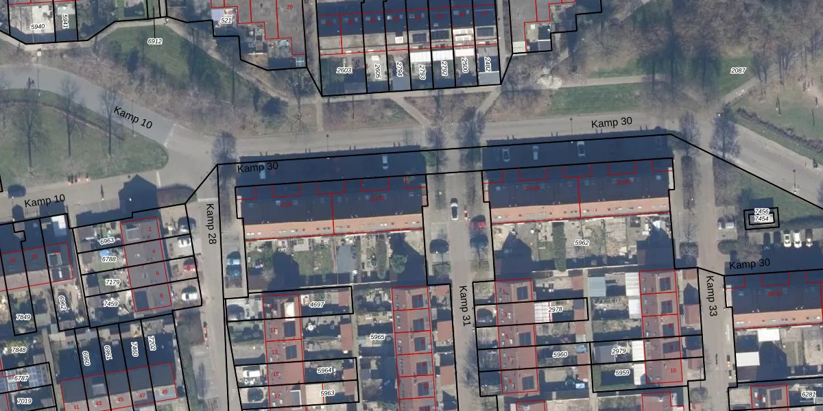 Het perceel waarop Kamp 30 26 staat heeft een oppervlakte van 3953 m². Dit is een zeer groot perceel. De perceeloppervlakte wordt geregistreerd door het Kadaster. Gedetailleerde informatie over de maten van dit perceel kunt u vinden in het rapport Kadastrale kaart met maatvoering van Kamp 30 26.