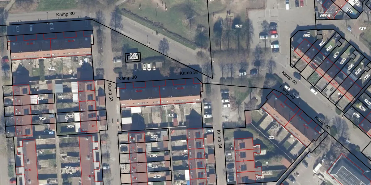 Het perceel waarop Kamp 30 92 staat heeft een oppervlakte van 2785 m². Dit is een zeer groot perceel. De perceeloppervlakte wordt geregistreerd door het Kadaster. Gedetailleerde informatie over de maten van dit perceel kunt u vinden in het rapport Kadastrale kaart met maatvoering van Kamp 30 92.