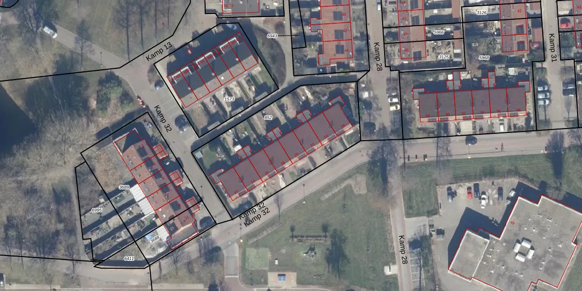 Kamp 32 20 is gelegen op kadastraal perceel LLS00O852. Deze kadastrale aanduiding is uniek en wordt gebruikt door het Kadaster om eigendomsrechten en andere zakelijke rechten vast te leggen. Het perceel maakt onderdeel uit van de kadastrale gemeente Lelystad.