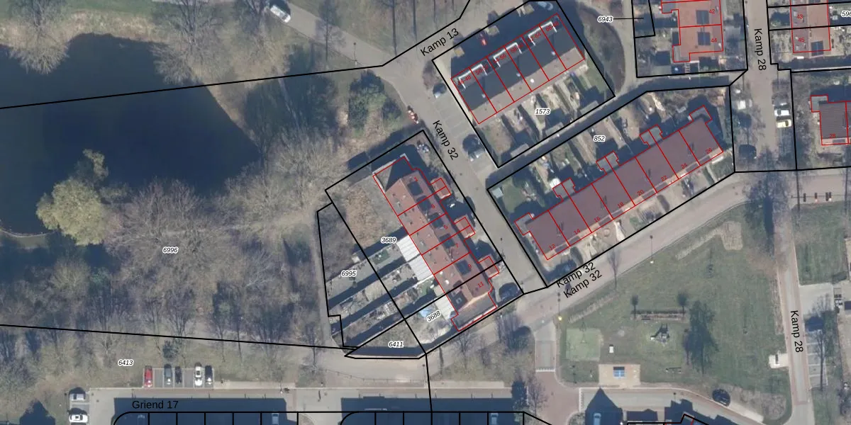 Het perceel waarop Kamp 32 3 staat heeft een oppervlakte van 963 m². Dit is een groot perceel. De perceeloppervlakte wordt geregistreerd door het Kadaster. Gedetailleerde informatie over de maten van dit perceel kunt u vinden in het rapport Kadastrale kaart met maatvoering van Kamp 32 3.