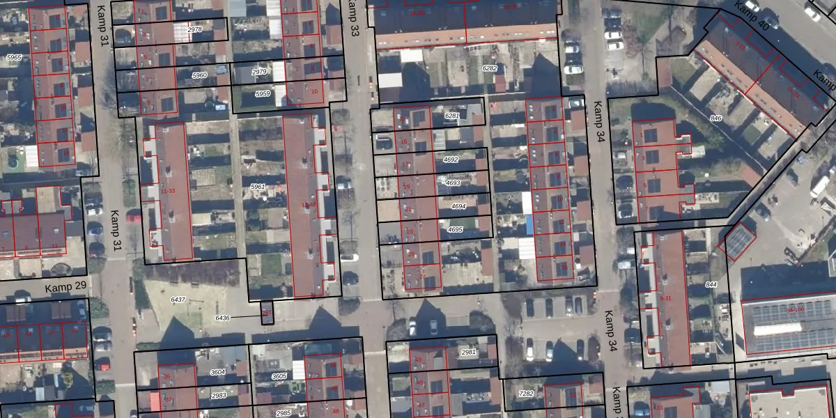 Gebruik de zoekbalk of klik op een perceel voor informatie over de adressen binnen dit perceel.